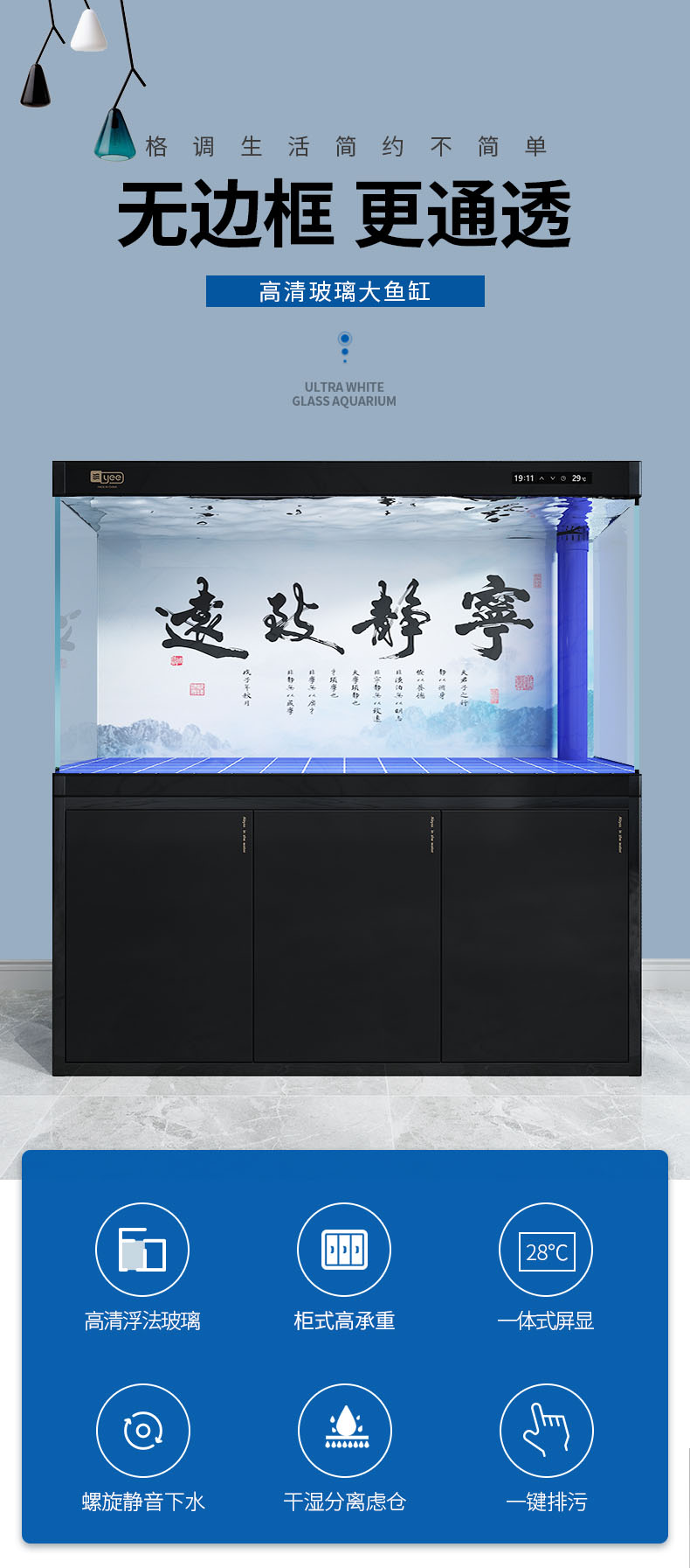 客廳魚缸水族箱生態(tài)免換水高清玻璃魚缸家用中型底濾金魚缸